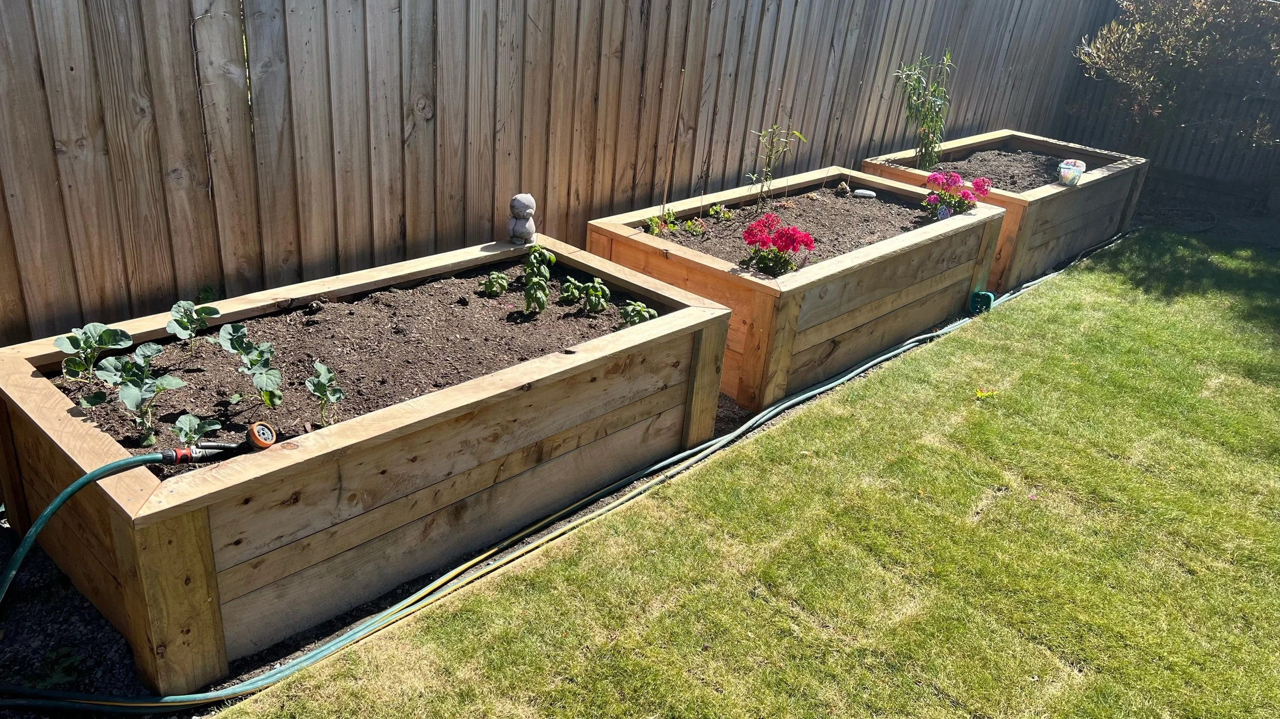 We built durable wooden Raised Garden Beds and designered planter boxes..